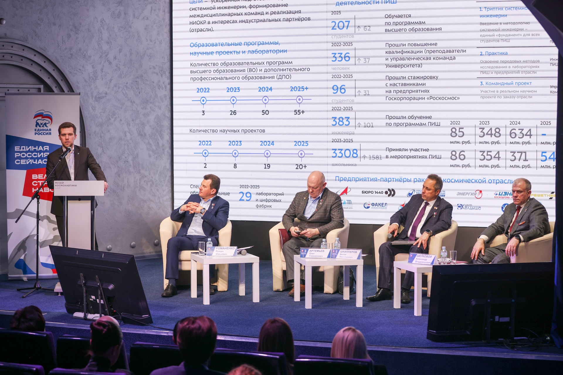 Москва играет ключевую роль в подготовке кадров для космической отрасли, данную работу необходимо развивать через образовательные и просветительские проекты для детей и молодежи. Об этом заявил Герой России, летчик-космонавт, депутат Государственной Думы России и член фракции партии «Единая Россия» Роман Романенко на круглом столе «Москва – столица космоса: как космические технологии работают на город и человека» в Музее космонавтики.